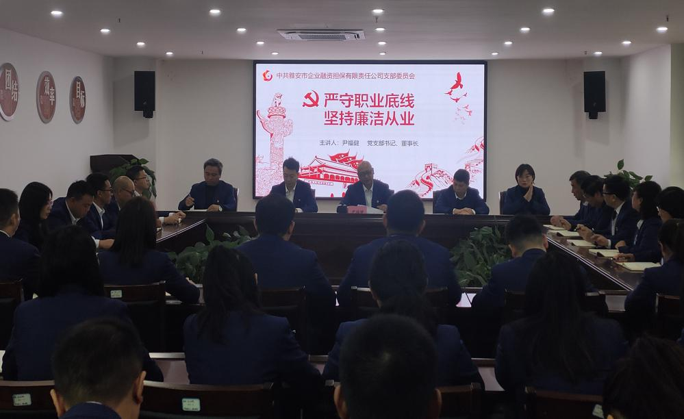 三是講黨課強(qiáng)黨性。市擔(dān)保公司黨支部書記、董事長尹福健以“嚴(yán)守職業(yè)底線,堅(jiān)持廉潔從業(yè)”為題,圍繞“認(rèn)識(shí)新形勢反腐敗斗爭的形勢、腐敗出現(xiàn)的原因和防范措施、學(xué)習(xí)廉潔法律法規(guī),防范廉潔風(fēng)險(xiǎn)、增強(qiáng)黨員領(lǐng)導(dǎo)干部拒腐防變的能力”四個(gè)方面,結(jié)合公司實(shí)際為黨員干部上了一堂生動(dòng)的廉政黨課,警示黨員干部要增強(qiáng)“四個(gè)意識(shí)”,堅(jiān)定“四個(gè)自信”,做到“兩個(gè)維護(hù)”,強(qiáng)化黨性修養(yǎng),自覺增強(qiáng)“免疫力”。