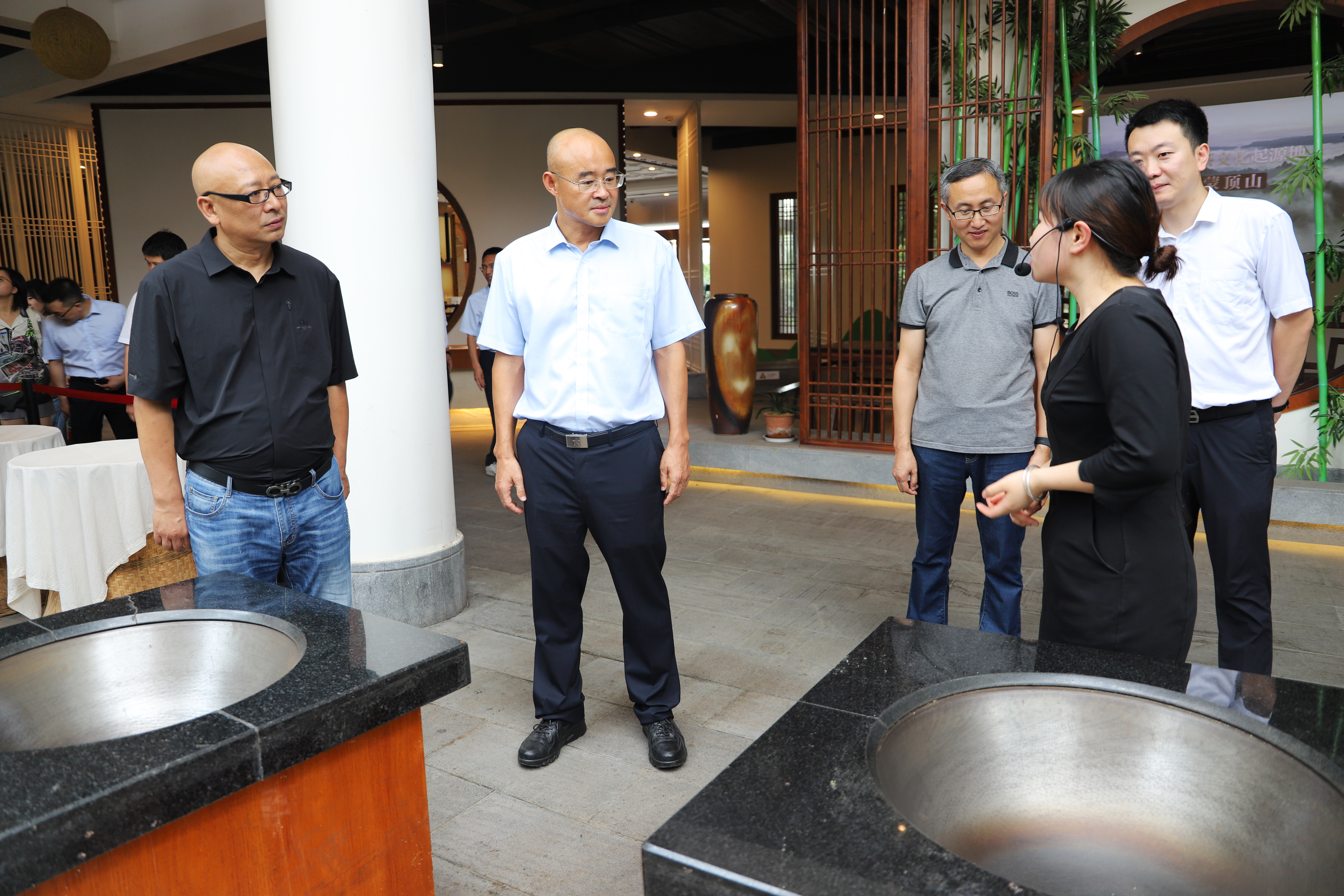 調(diào)研組參觀了市擔(dān)保公司在保企業(yè)——四川蒙頂山躍華茶業(yè)集團(tuán)有限公司,從茶園到茶杯,從采摘到成品,調(diào)研組對雅茶的制作和品鑒有了全面深入的了解。在隨后的座談中,參會人員集中學(xué)習(xí)了《關(guān)于加強(qiáng)政府性融資擔(dān)保機(jī)構(gòu)管理工作的通知》(川財金〔2023〕45號),共同探討了創(chuàng)設(shè)和推廣“蜀擔(dān)快貸—興雅貸”銀擔(dān)批量產(chǎn)品的相關(guān)事宜。