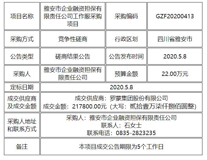 工作服采購項(xiàng)目競爭性磋商結(jié)果公告