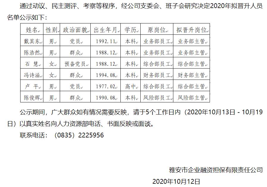 關(guān)于2020年擬晉升人員名單公示